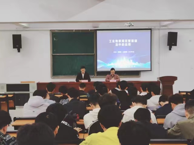 4月28日下午,自动化教研室主任周武郁为自动化类专业全体学生做了题为“工业物联网在智能制造中的应用”的学科前沿讲座,讲座由实验实训中心主任罗锦锋主持。