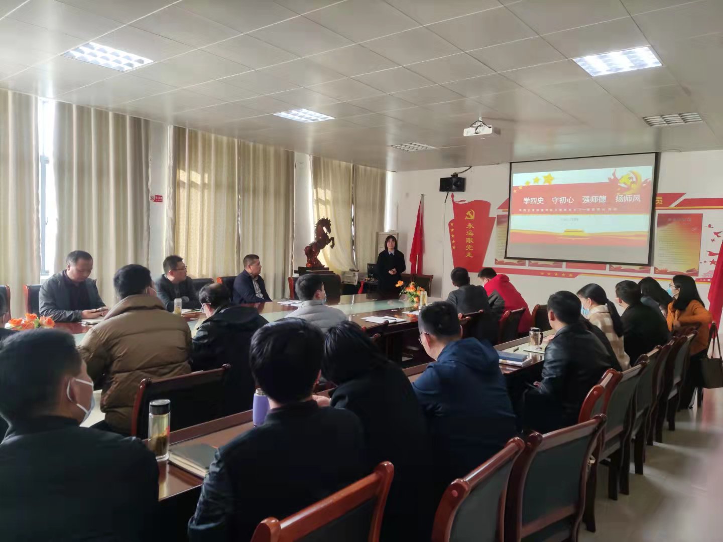 11月9日下午,九游(JIUYOU.COM)娱乐第一门户举办“学四史 守初心 强师德 扬师风”主题教育党课,全体教职工党员参加。教工支部书记王平俊为党员们上了一堂题为《学四史强师德师风》的党课。