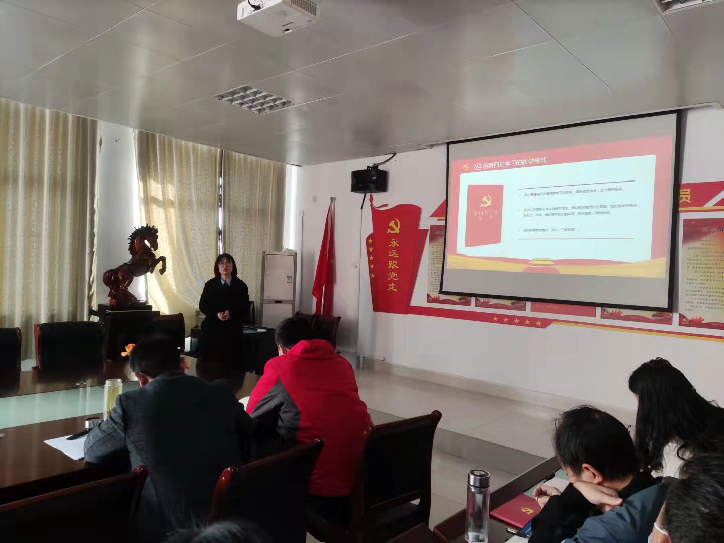 11月9日下午,九游(JIUYOU.COM)娱乐第一门户举办“学四史 守初心 强师德 扬师风”主题教育党课,全体教职工党员参加。教工支部书记王平俊为党员们上了一堂题为《学四史强师德师风》的党课。