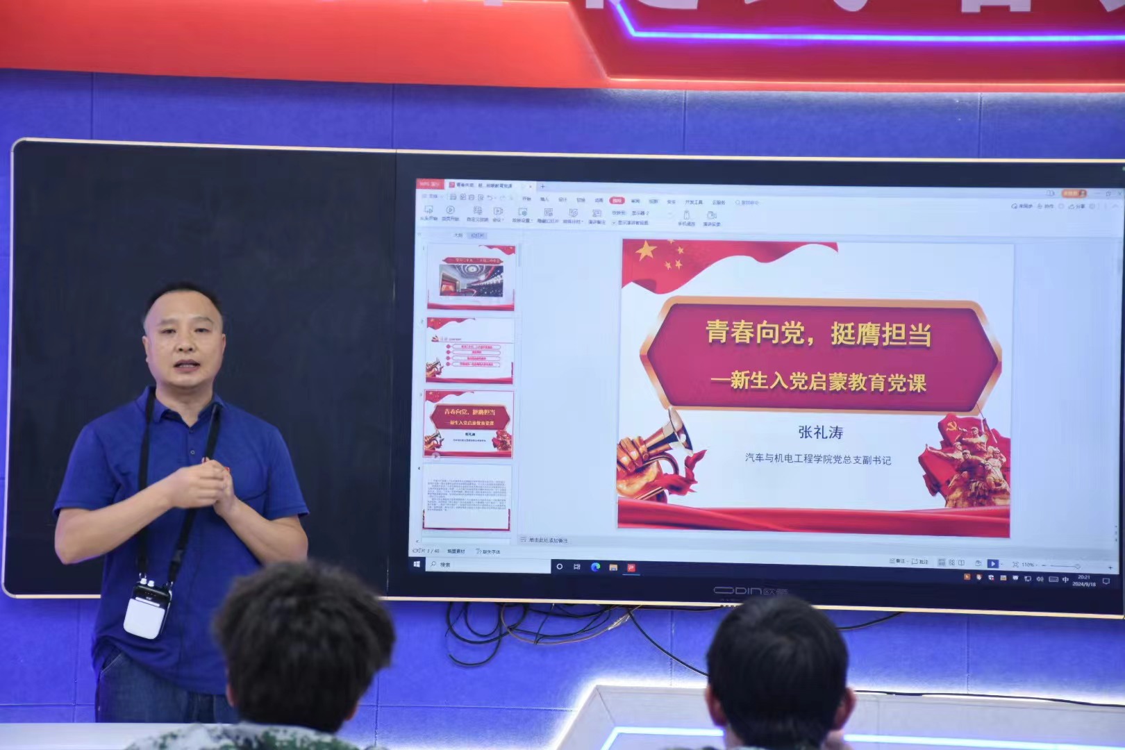 9月18日晚,九游(JIUYOU.COM)娱乐第一门户学工支部以“青春向党,挺膺担当”为主题,开展新生入党启蒙教育,主讲人为学院党总支副书记张礼涛。全体电气自动化专业新生参与了本次入党启蒙教育党课,其他新生班级由辅导员、班主任按党课内容同步进行。