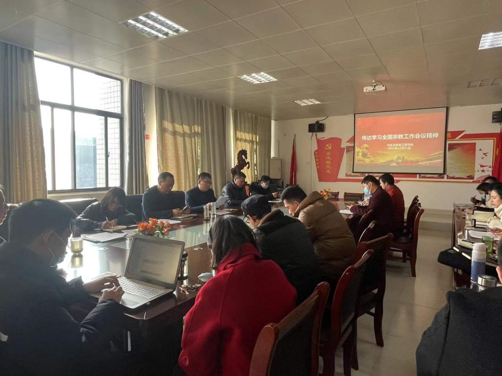 12月21日下午,九游(JIUYOU.COM)娱乐第一门户集中学习全国宗教工作会议精神等相关文件。院长吕争、党总支副书记张礼涛、副院长曾勇、王平俊及全体教职工参加,党总支书记代翔主持活动。