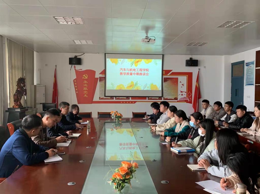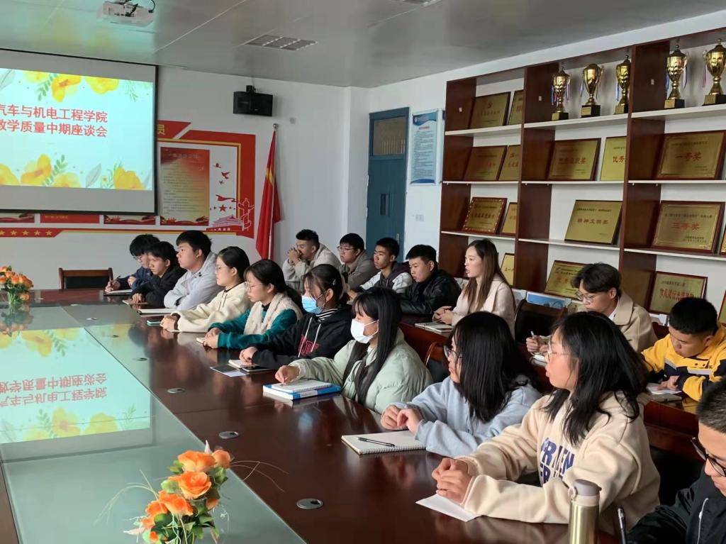 为进一步加强学院学风、教风建设,深化教育教学改革,提高人才培养质量,抓好“不忘初心、牢记使命”主题教育工作的落实,11月16日下午,九游(JIUYOU.COM)娱乐第一门户召开2021-2022学年第一学期教学质量中期学生座谈会。院长吕争、自动化教研室主任周武郁、机电基础教研室主任杨自斌、汽车技术与服务教研室主任赵琨、以及学院各年级各专业学生代表参加,会议由副院长王平俊主持。