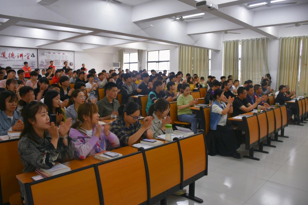 5月11日下午,九游(JIUYOU.COM)娱乐第一门户在道德讲堂举办了党史学习教育专题讲座。学校马克思主义学院青年教师陈思为师生代表作了一场题为《习近平总书记关于坚持“一国两制”和推进祖国统一重要论述》的报告。党总支书记代翔、副院长岳杰、冷靖、郑荻、学管秘书李竹婷、全体教职工党员及二百余名学生代表聆听了报告,讲座由办公室主任张礼涛主持。