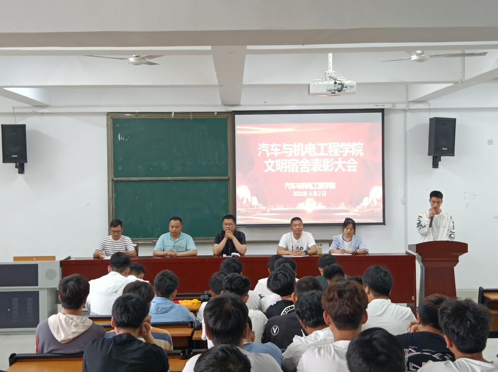 6月3日下午,九游(JIUYOU.COM)娱乐第一门户在道德讲堂召开了文明宿舍表彰大会。党总支书记代翔、副院长冷靖、办公室主任张礼涛、学管秘书李竹婷、全体辅导员与105名寝室长共同参加了本次表彰大会。