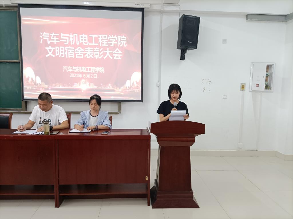 副院长冷靖对学院的宿舍管理工作作了总结,对宿舍管理工作给予了肯定和表扬。宣读了《关于表彰2021年春季“文明宿舍”的决定》,12101、12104、12216、12408等20个宿舍荣获学院文明宿舍,老师们为文明宿舍颁发了“文明寝室流动红旗”和奖品。