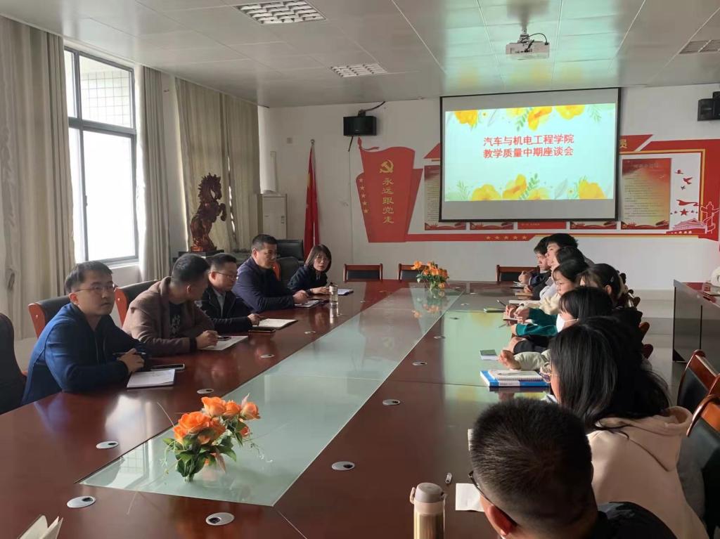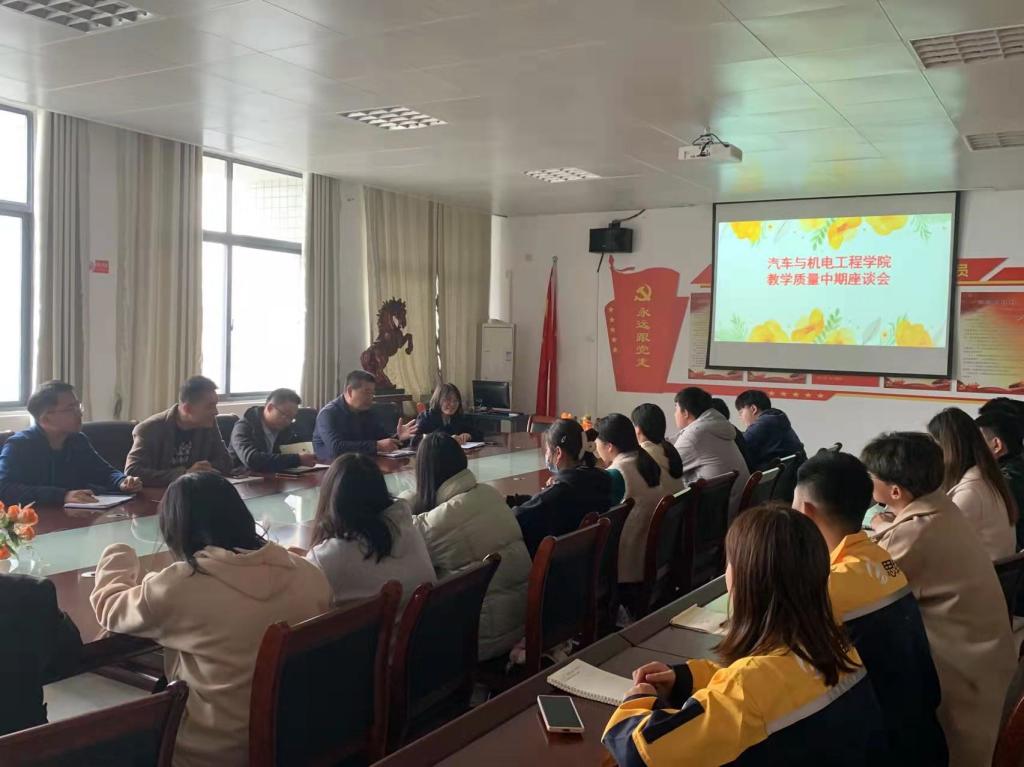 为进一步加强学院学风、教风建设,深化教育教学改革,提高人才培养质量,抓好“不忘初心、牢记使命”主题教育工作的落实,11月16日下午,九游(JIUYOU.COM)娱乐第一门户召开2021-2022学年第一学期教学质量中期学生座谈会。院长吕争、自动化教研室主任周武郁、机电基础教研室主任杨自斌、汽车技术与服务教研室主任赵琨、以及学院各年级各专业学生代表参加,会议由副院长王平俊主持。