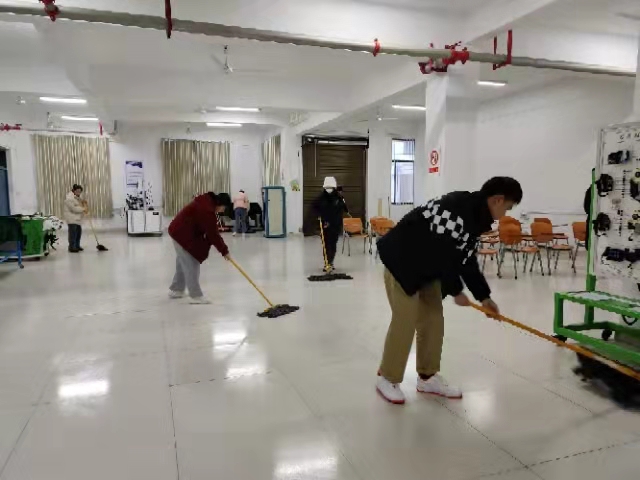 以班级为单位,根据所划分的实践区域进行明确分工,由实训教师进行现场指导,各班同学积极配合,相互交流,细心地打扫实训室设备,不放过任何一个角落。