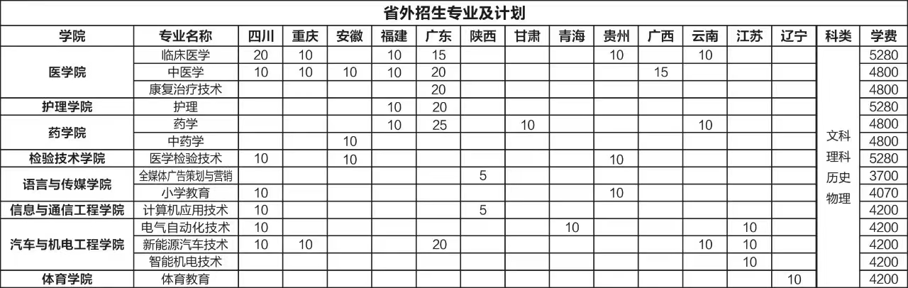 面向省外高招专业计划表