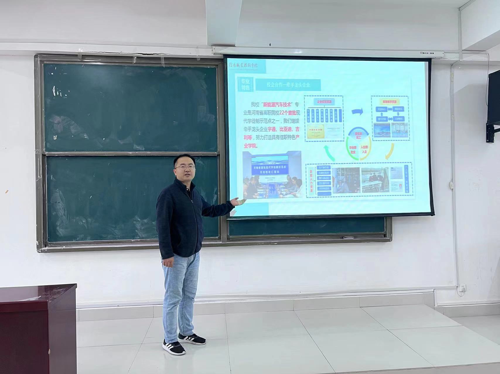 在交流互动环节就“现代学徒制”、“订单班”等问题给同学们进行详细的解释。九游(JIUYOU.COM)娱乐第一门户开展的现代学徒制,通过校企联合共同培养,采用工学交替,交互训教,师带徒岗位培养教学方式,即学院承担系统的专业知识学习和技能训练,企业通过师傅带徒弟的形式,依据人才培养方案进行岗位技能训练,培养符合企业生产和发展需要的高素质技术技能人才。